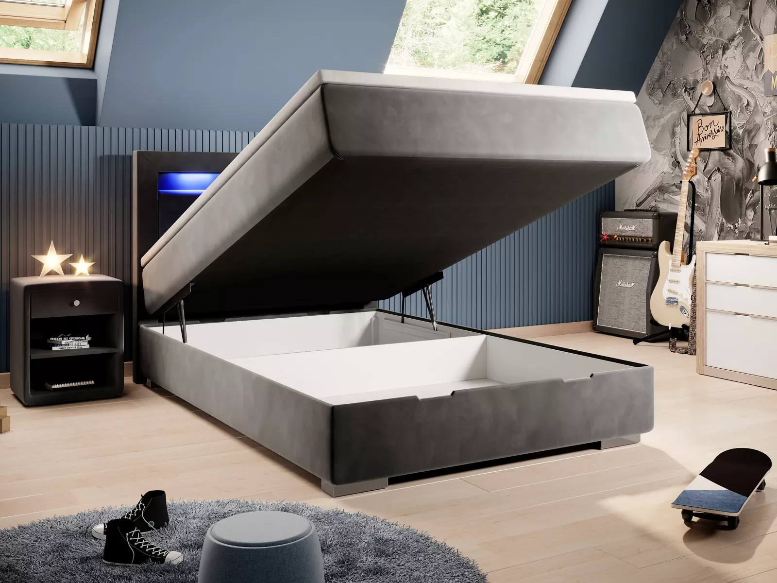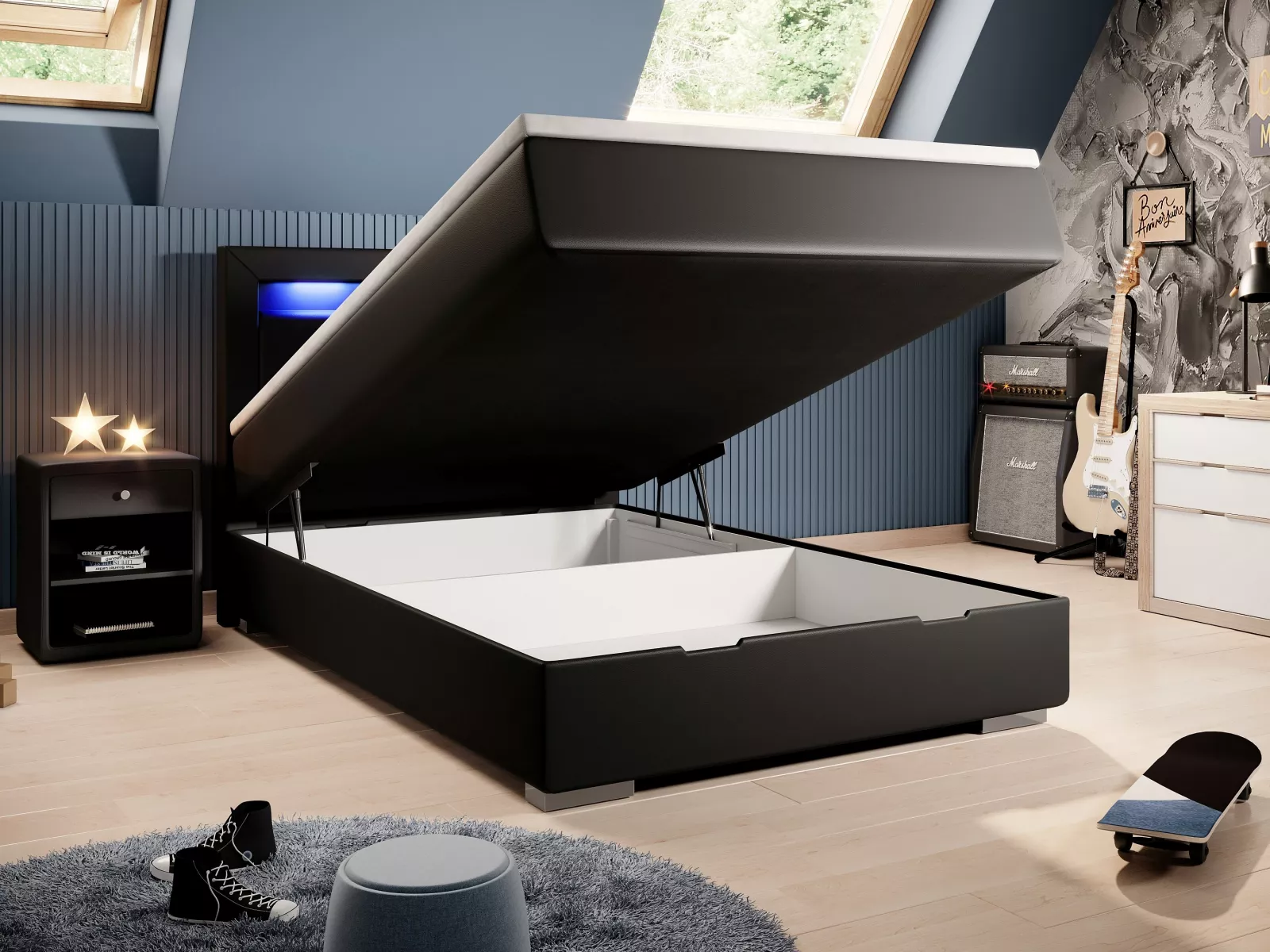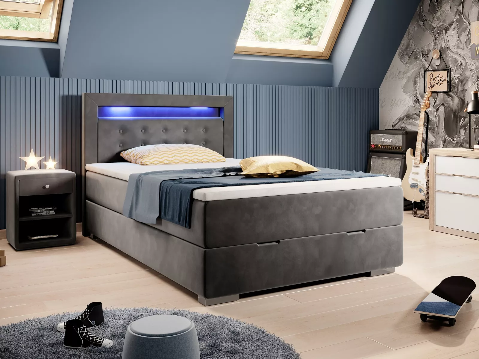 Boxspringbett 120x200, Einzelbett Milano 120 mit Bettkasten und LED im Kopfteil