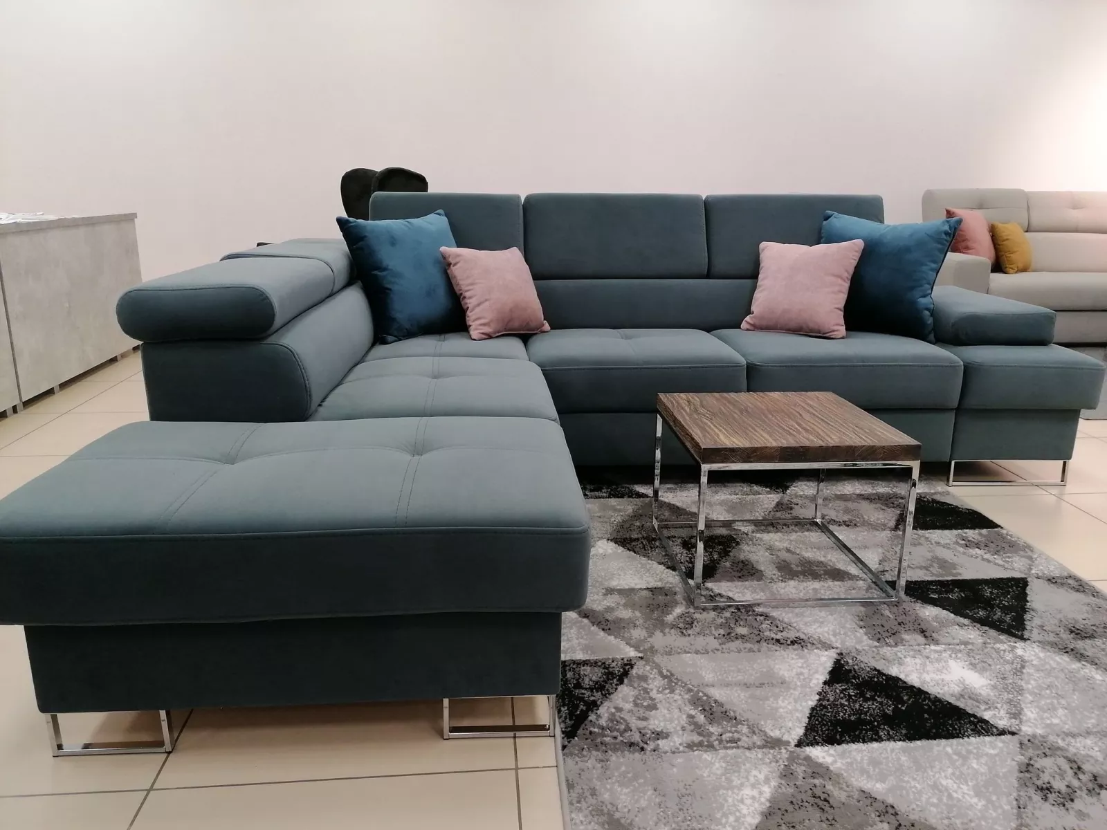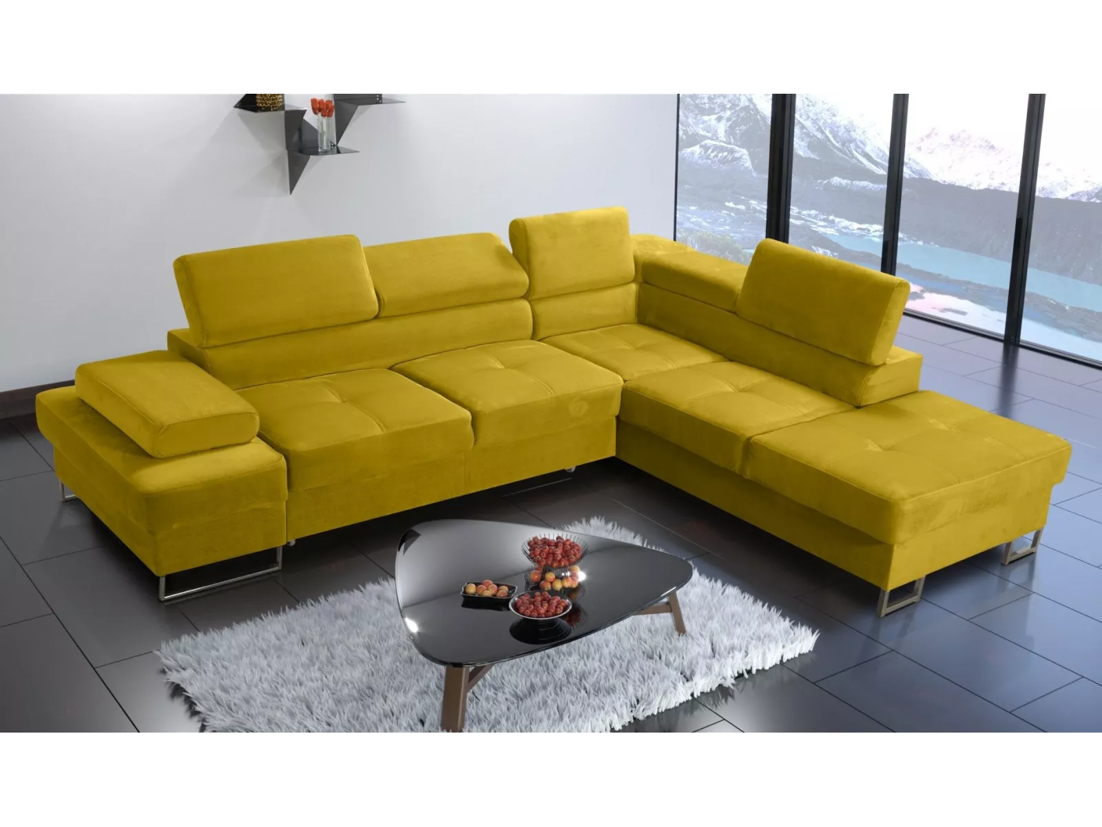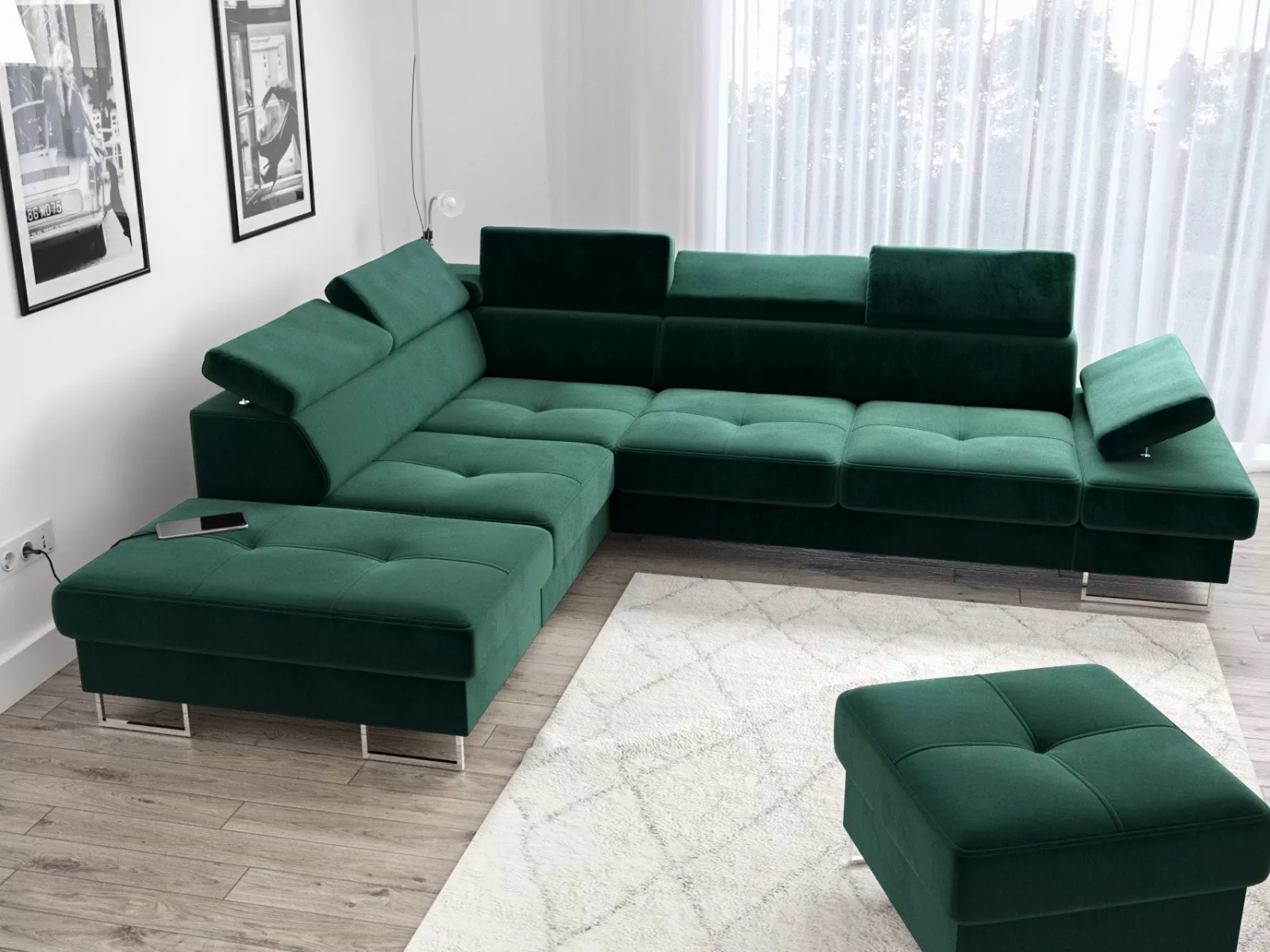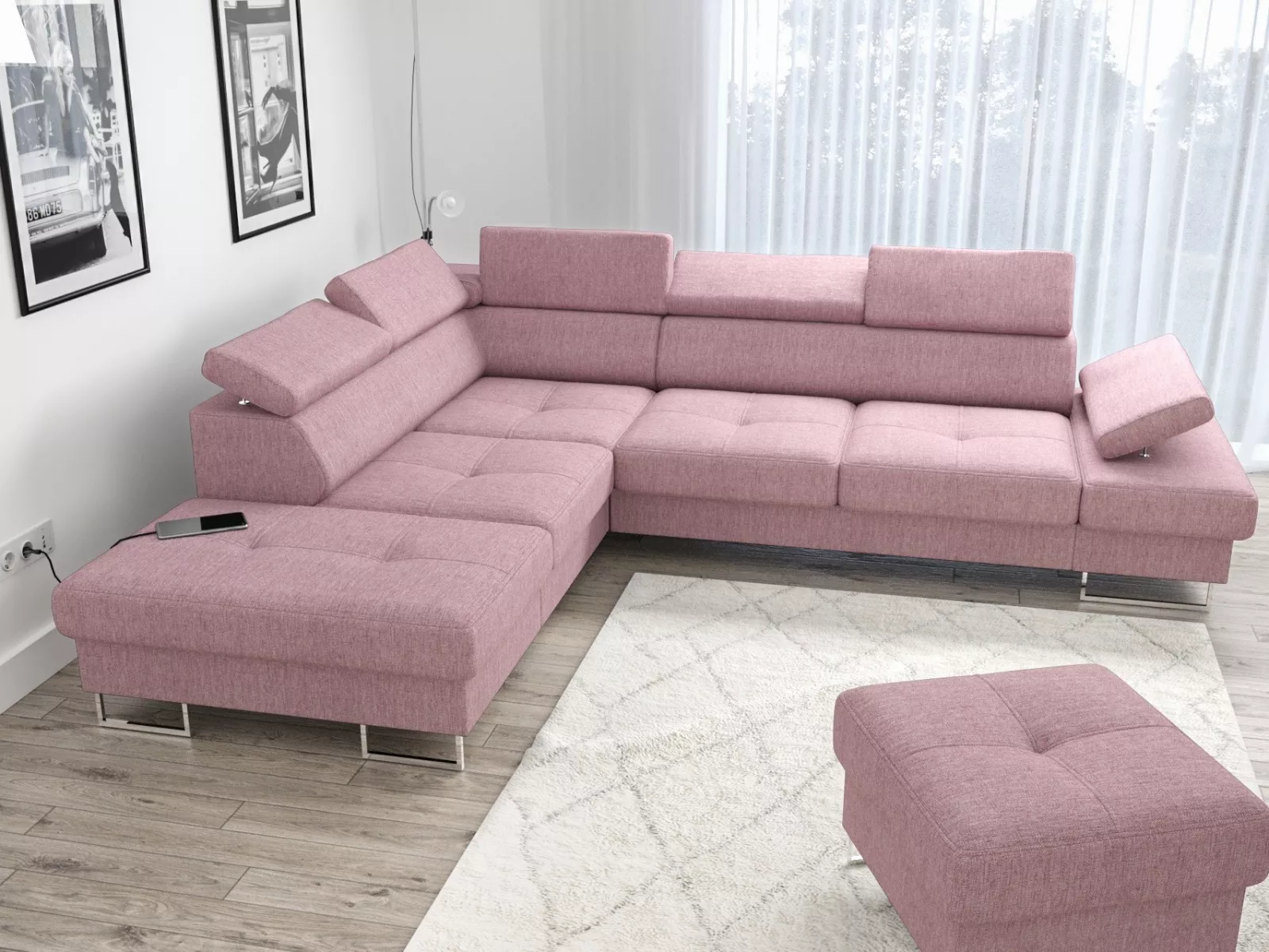 Modernes Ecksofa Galaxy mit 5 verstellbaren Kopfstützen, Schlaffunktion und Bettkasten