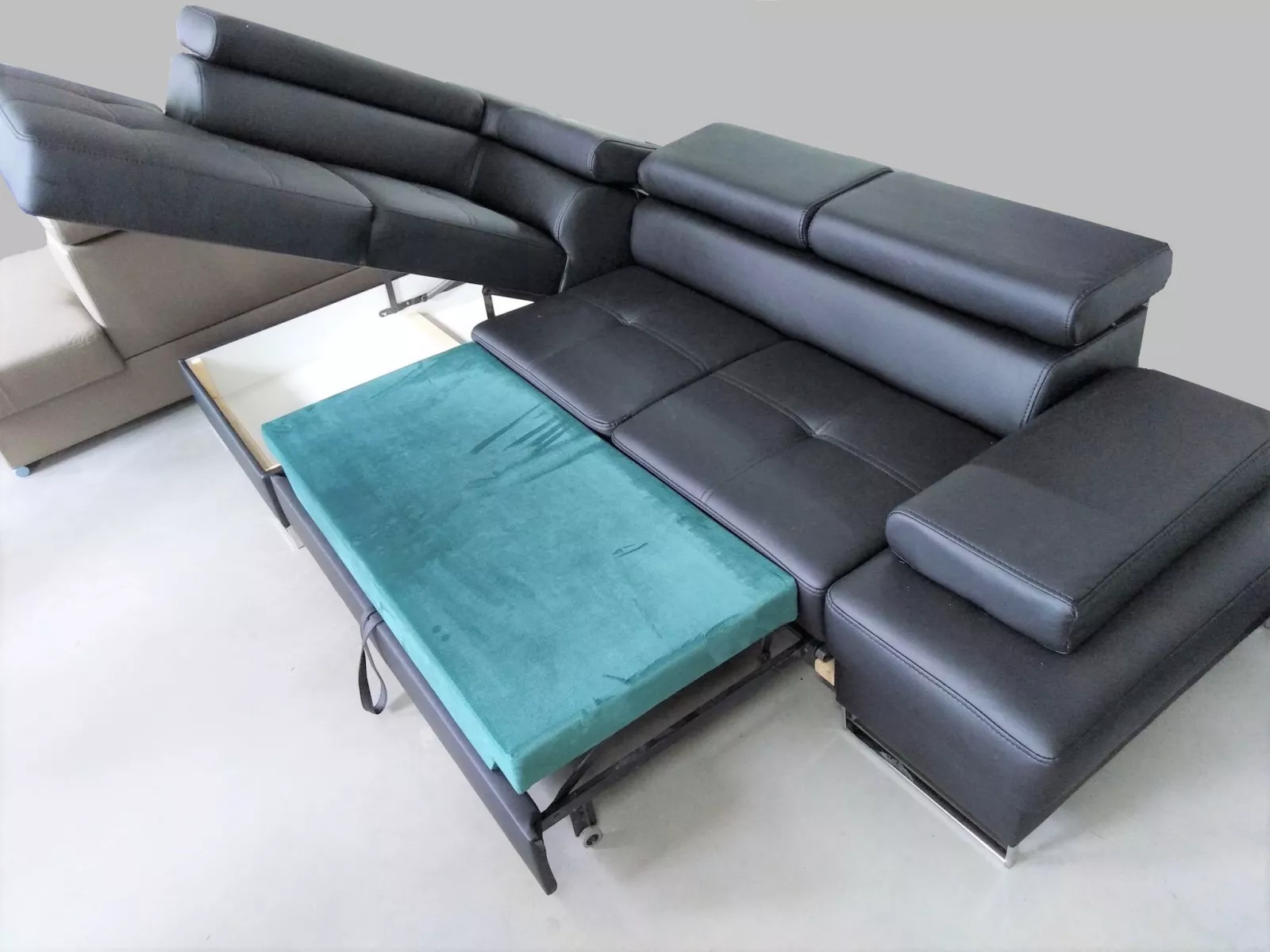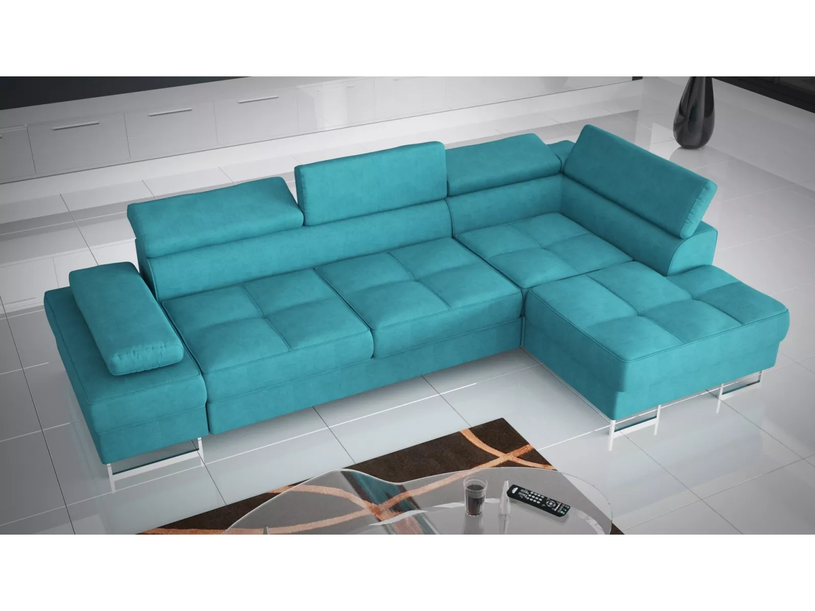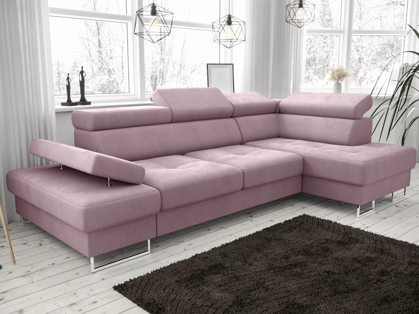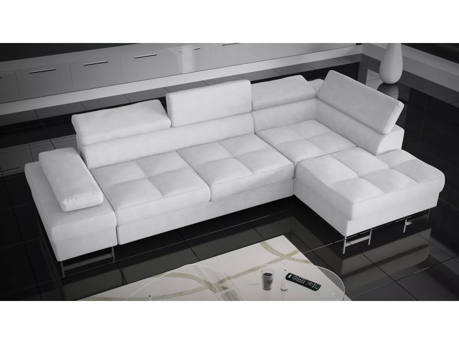 Polsterecke Ecksofa Galaxy Mini mit Bettfunktion, Stauraum und verstellbaren Kopfstützen