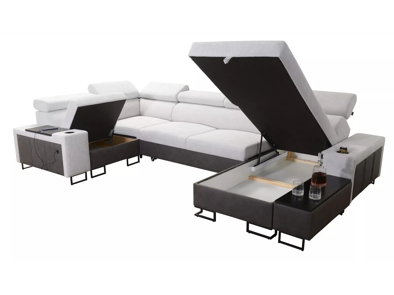 Wohnlandschaft in U-Form Melody IV mit USB und vielen Extras sowie mit Schlaffunktion