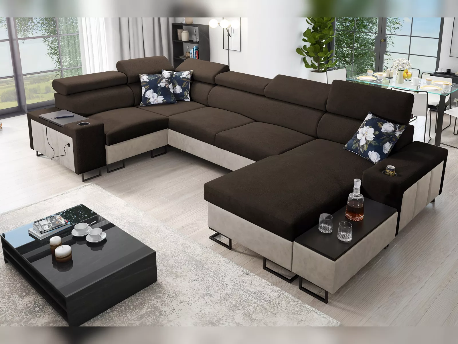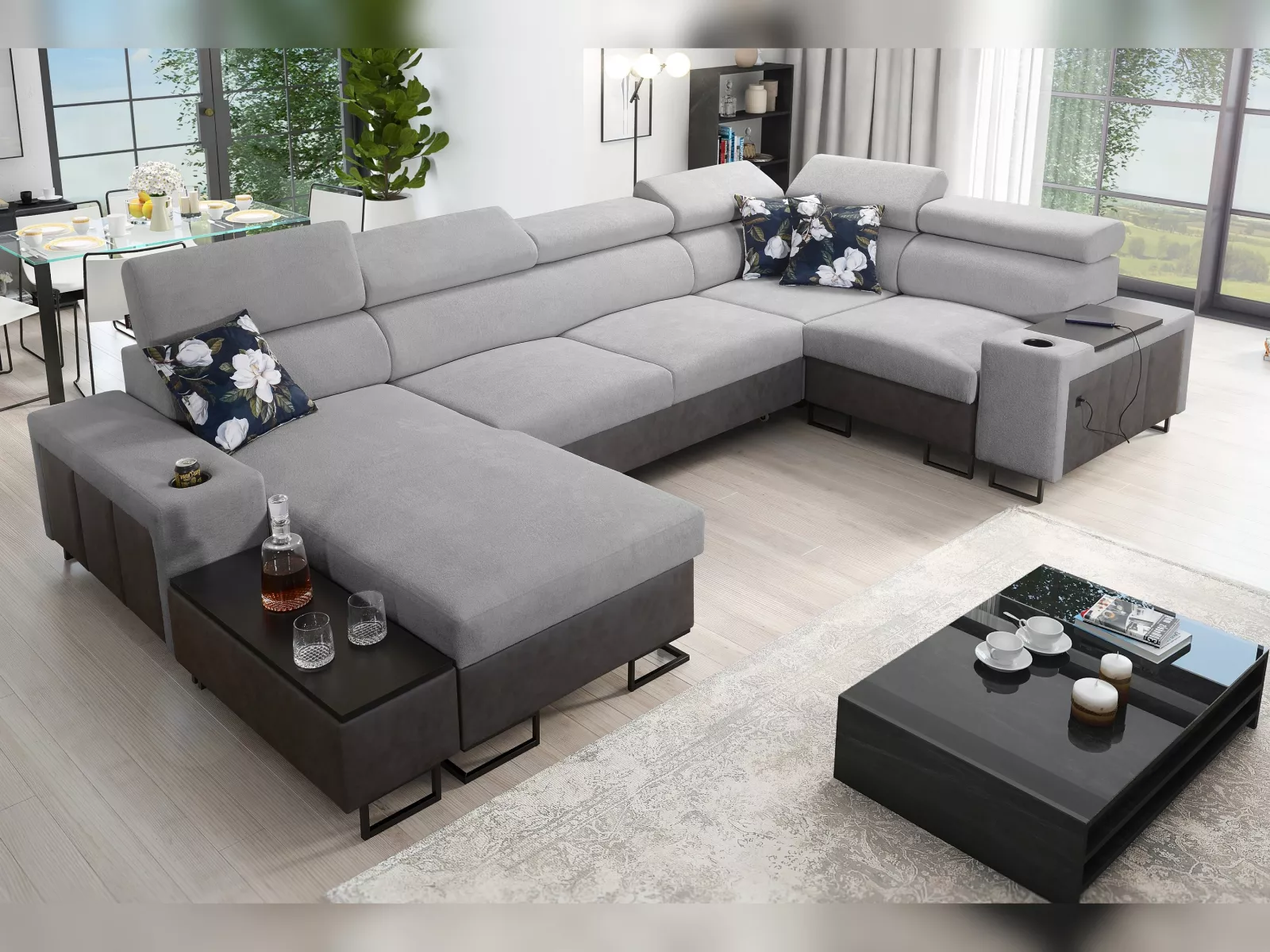 - Bitte beachten Sie, dass der große Couchtisch und die Dekoration nicht zum Lieferumfang gehören.