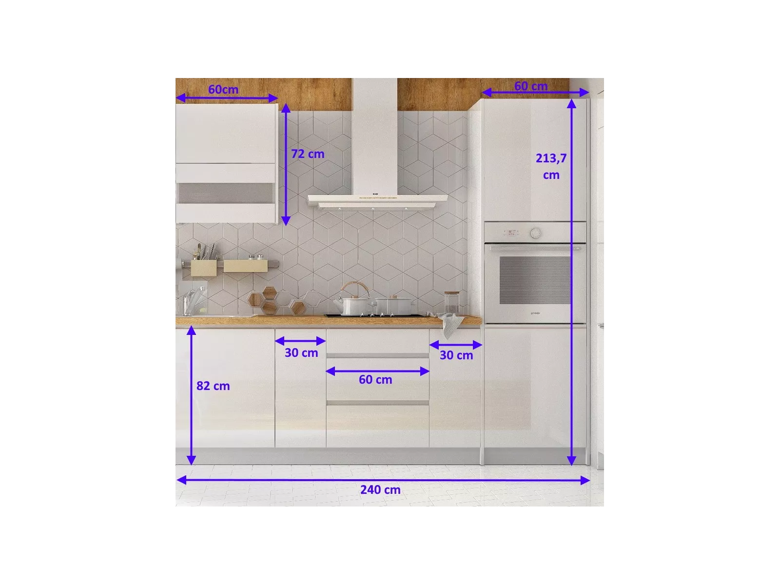 - Die Tiefe der Unterschränke beträgt 54 cm (mit Fronten).