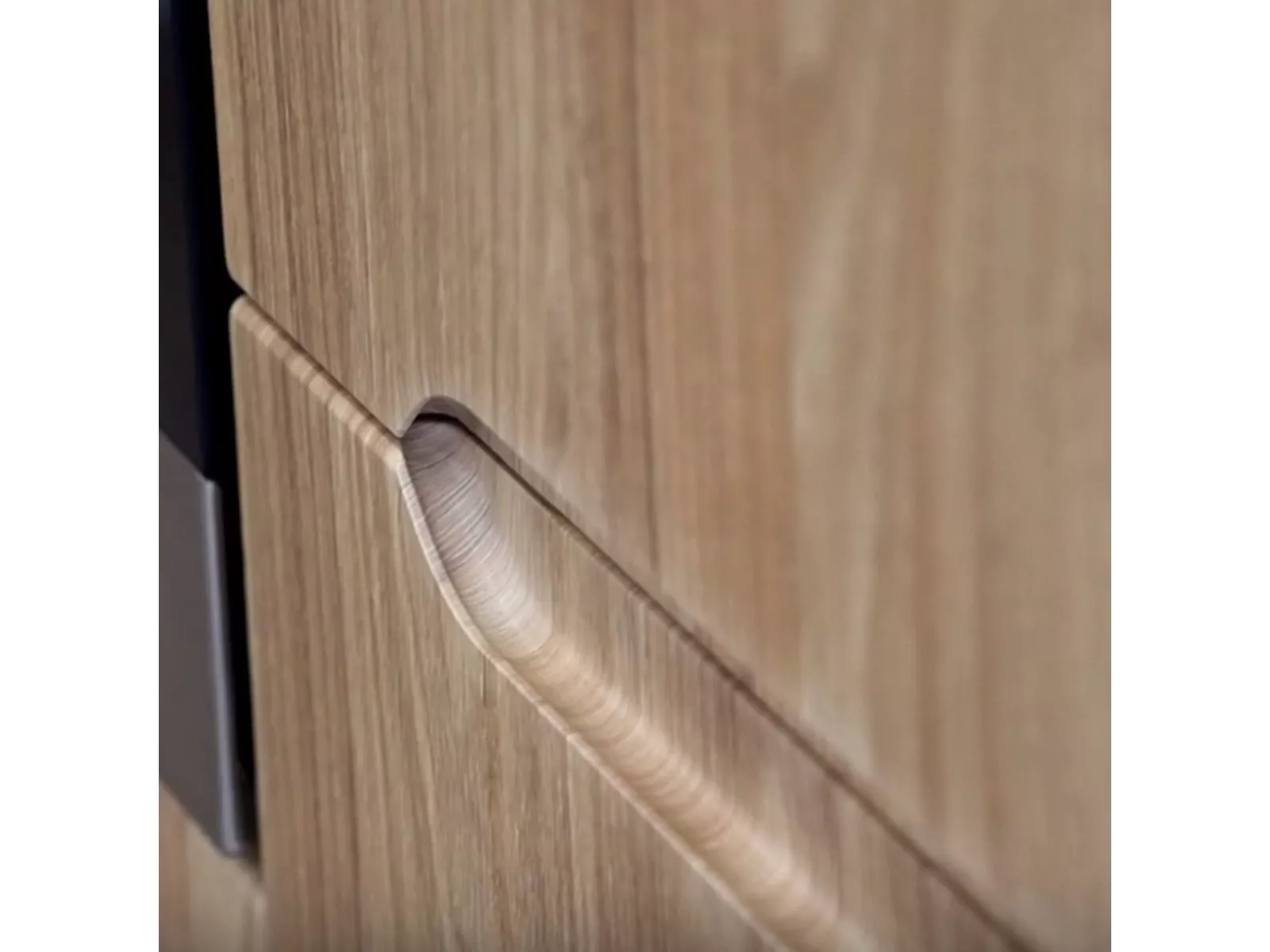 - Die Küche Zoya ist grifflos, das heißt sie hat keine Griffe. Die Fronten haben an passenden Stellen eingefräste Griffmulde, die zum Öffnen dient.