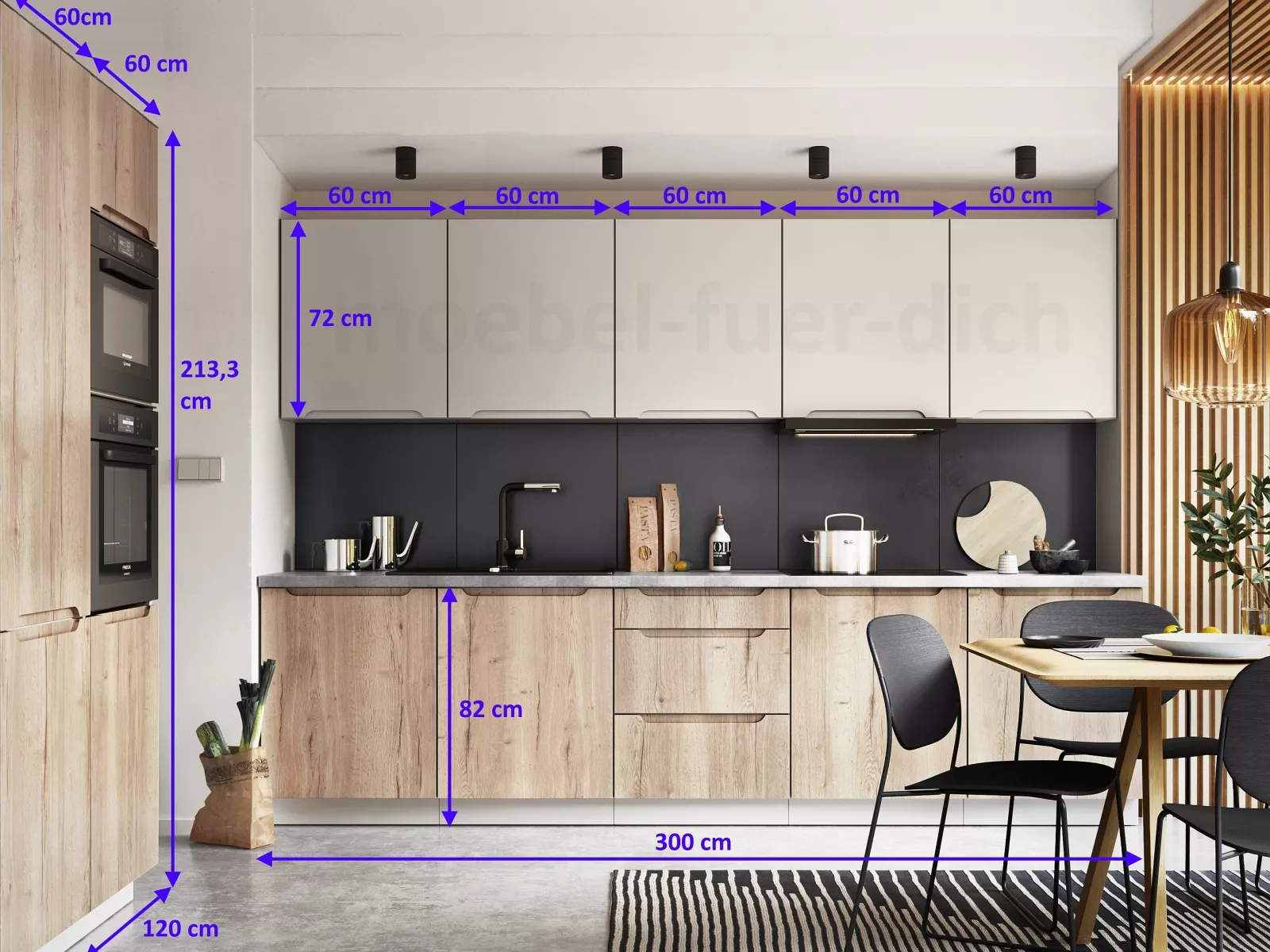 - Die Oberschränke haben eine Tiefe von 30 cm.
