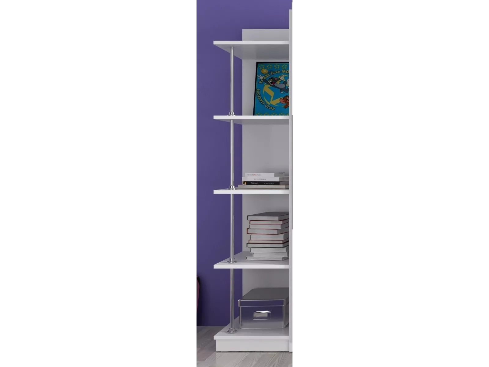 Das Kinderzimmer Set Mati in modernem Design mit schicken Hochglanz-Fronten in vier möglichen Farben wird Mädchen und Jungs, Teenager und Kinder gleich stark begeistern. Das Set besteht aus einem Schreibtischmodul mit Schubladen und Fächern, einem zweitürigen Kleiderschrank mit drei Schubladen und einem Eckregal mit Chromstange. Durch robuste Bauweise und hochwertige Materialien sind die Möbel sehr stabil und sicher.