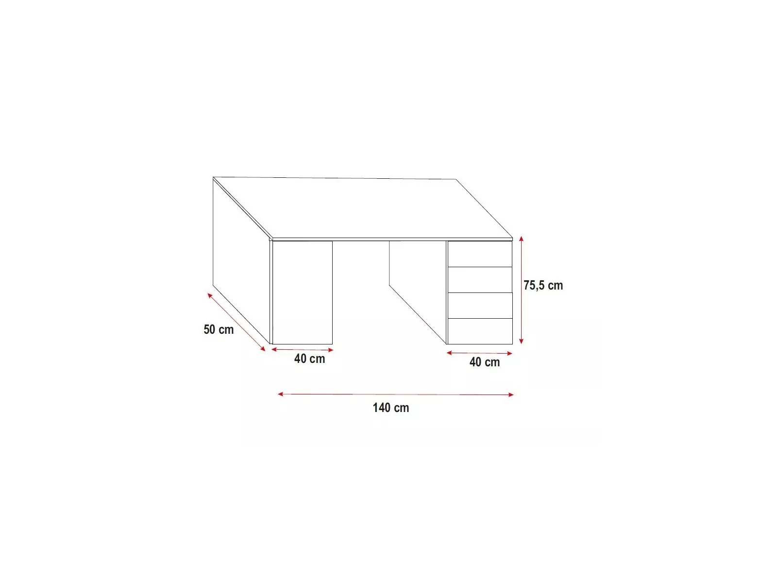 Schreibtisch mit einer Tür und vier Schubladen.
