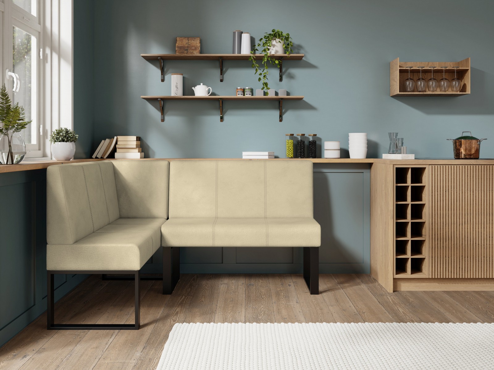 Die Eckbank Berlin kombiniert hohe, schlanke Metallbeine mit bequemer Polsterung und verleiht jedem Raum einen modernen, leichten Look. Klare, geometrische Formen und komfortable Sitzflächen machen sie zu einem stilvollen und zugleich gemütlichen Möbelstück. Sie ist ideal für eine modern eingerichtete Küche oder ein Esszimmer, in dem Design und Sitzkomfort gleichermaßen zählen.