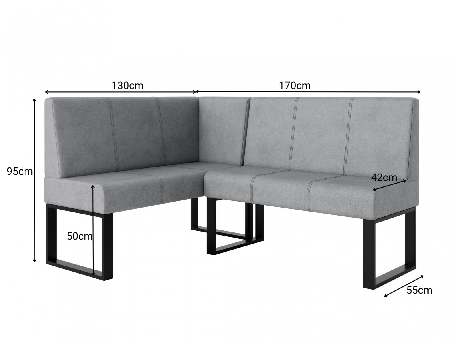 Stellmaße der Eckbank: 130 cm x 170 cm