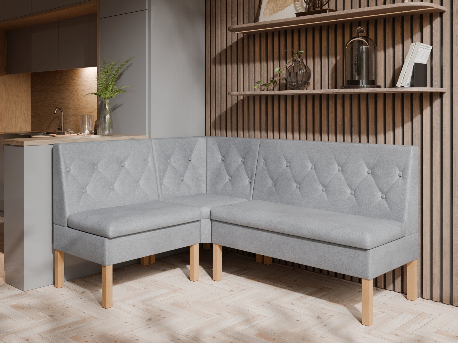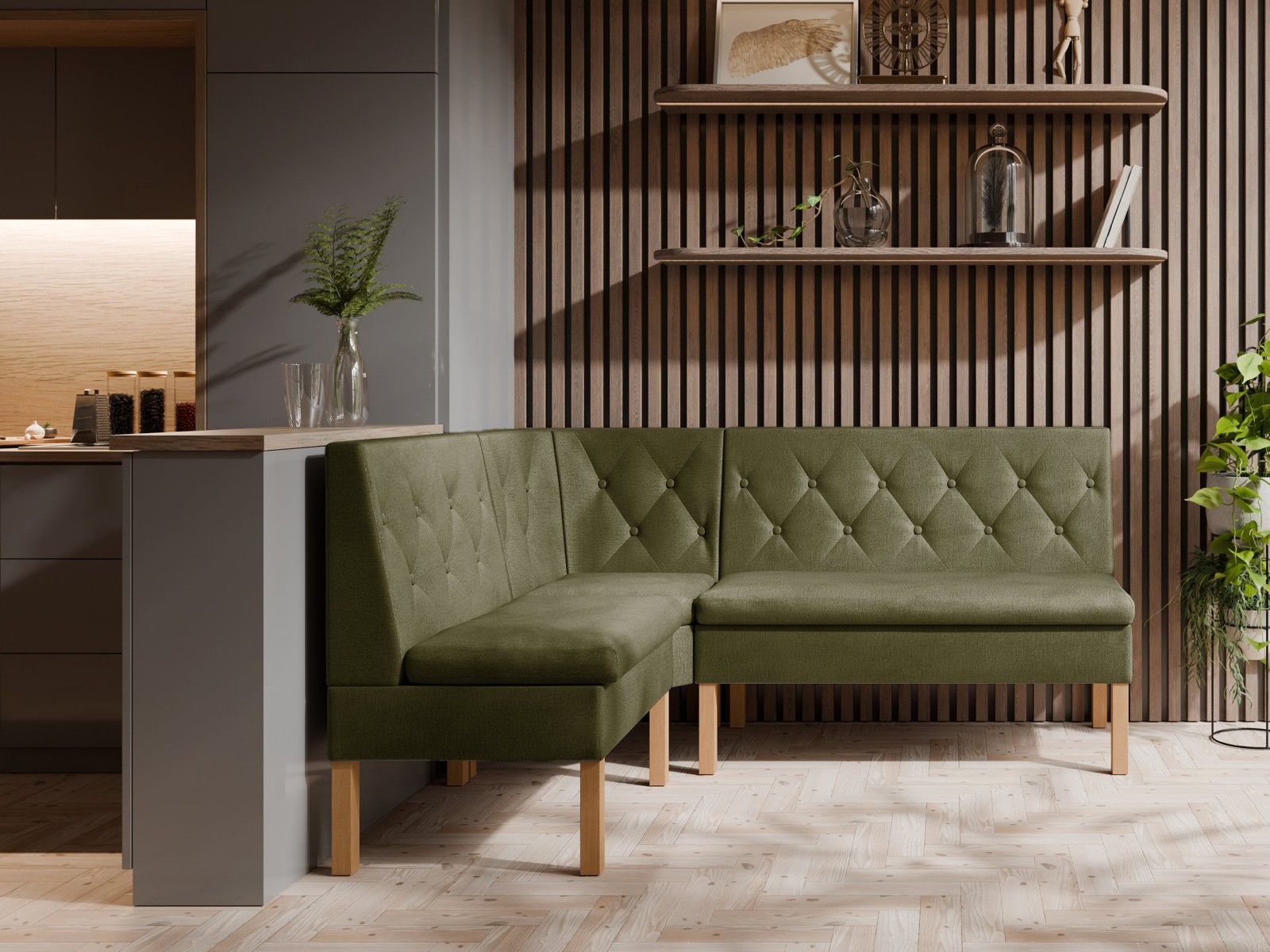 Kücheneckbank Praga mit Chesterfield-Polsterung, Stauraum und Holzbeinen – Eleganz für moderne Essbereiche