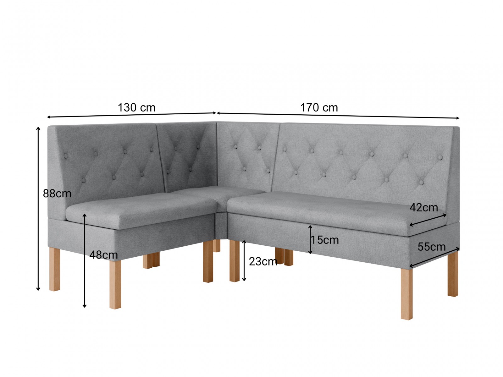 Stellmaße der Eckbank: 130 cm x 170 cm