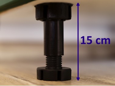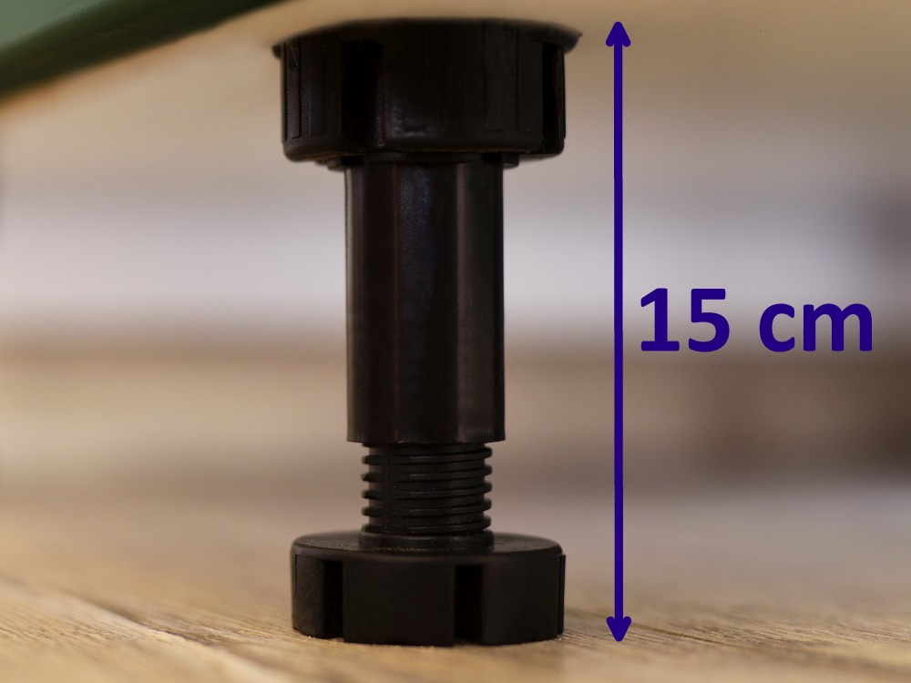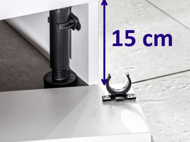 - Mit den 15 cm hohen Füßen können Sie die Höhe der Unterschränke von 82 cm auf 87 cm und der Hochschränke von 213,7 cm auf 218,7 vergrößern.