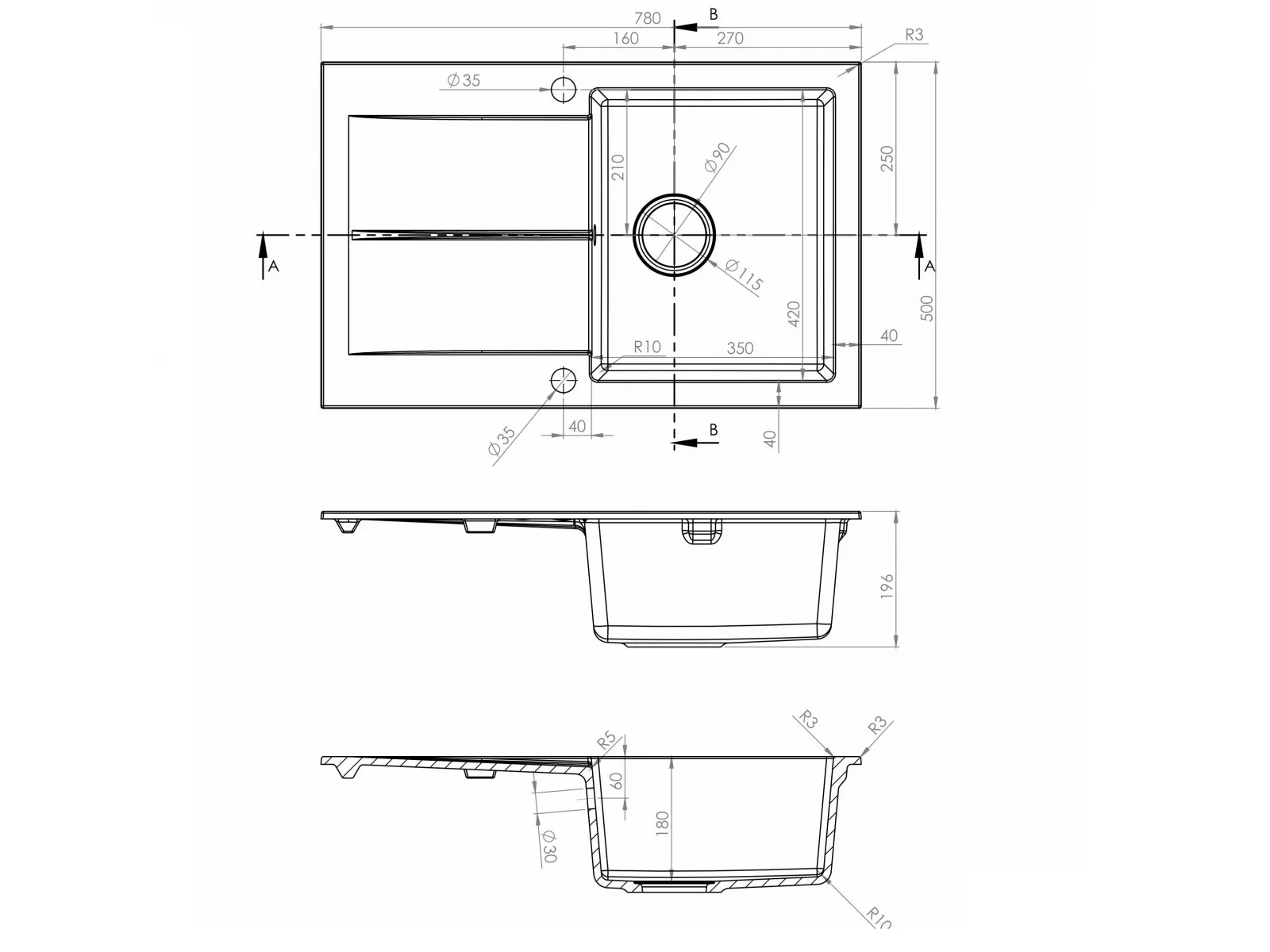 - Aus besonders pflegeleichten und robusten Kompositmaterial Granital
