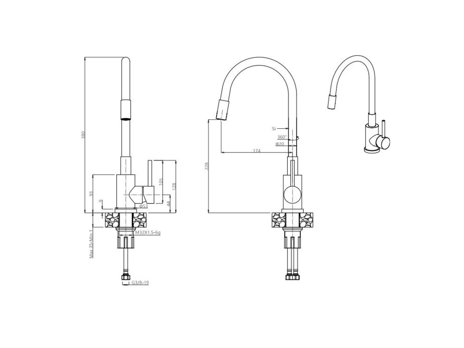 - Armatur mit Edelstahlelementen und flexiblem Auslauf ist im Lieferumfang enthalten