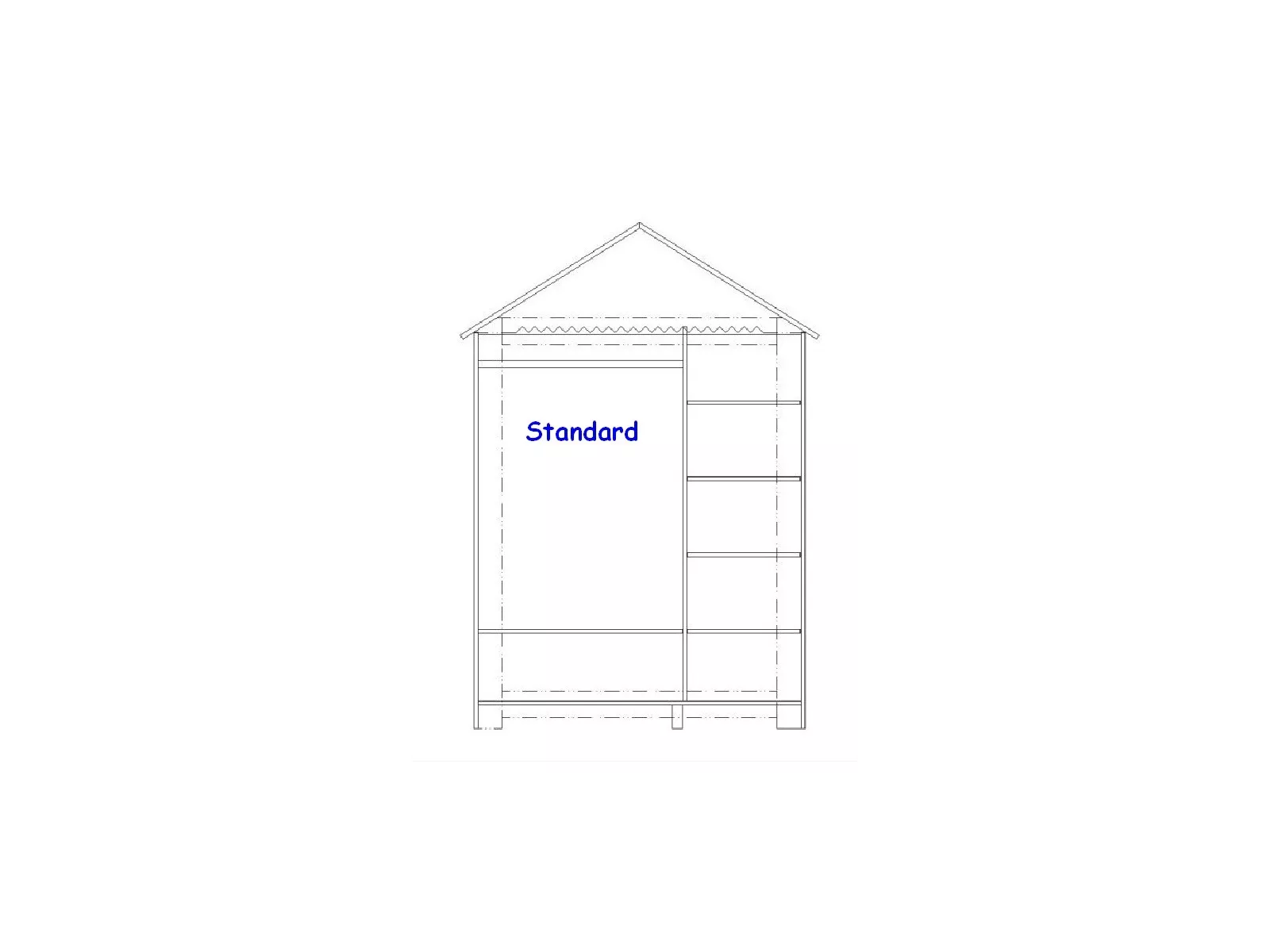 - Hinter der Doppeltür ein Einlegeboden und eine Kleiderstange.