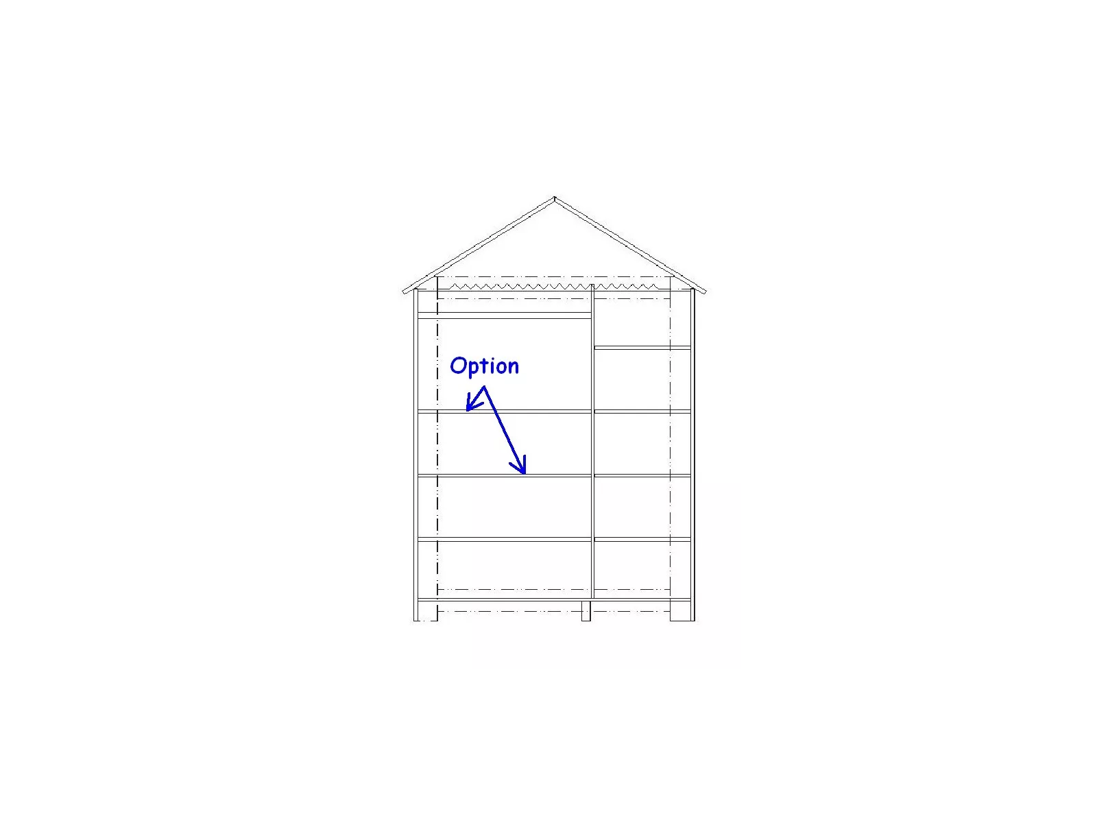 - Hinter der Einzeltür vier Einlegeböden.