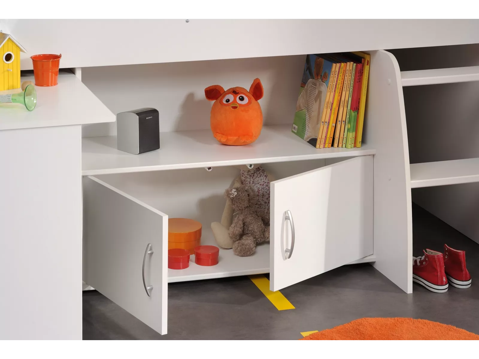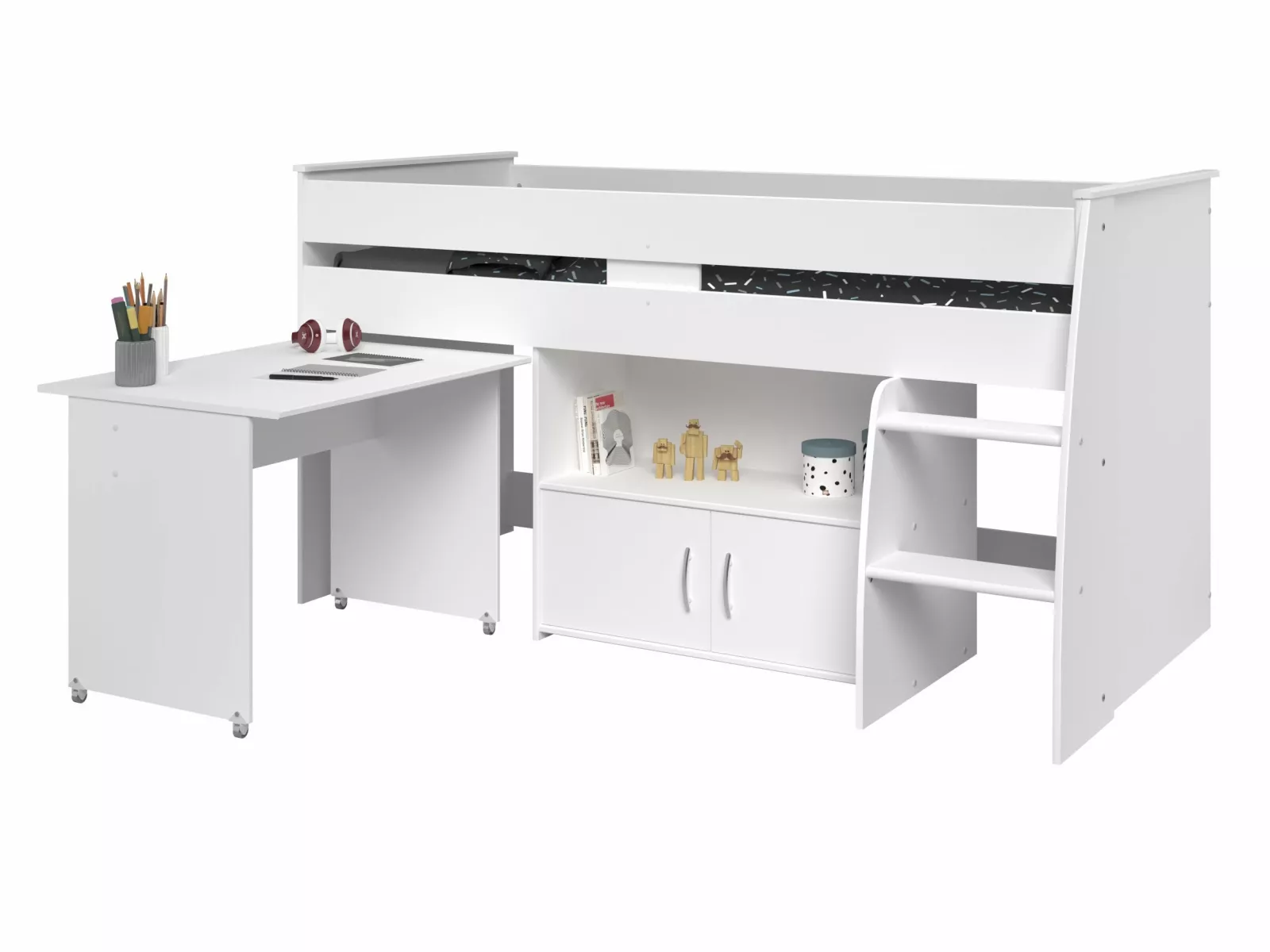 Parisot Reverse 1 - Hochbett mit Schreibtisch, Fach und Ablagen