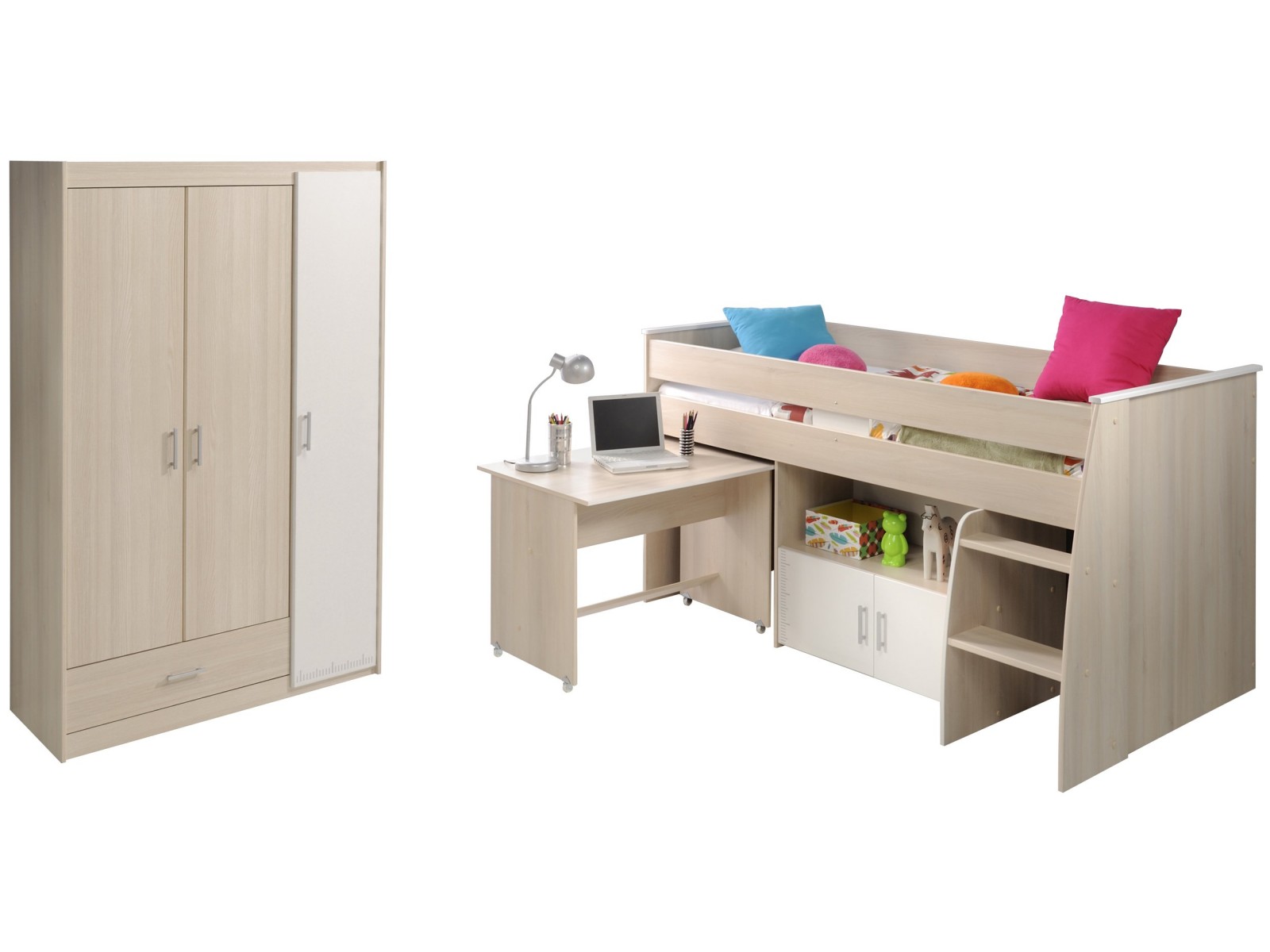 Das Parisot Charly 6 Möbelset ist eine perfekte Kombination aus Funktionalität und stilvollem Design, ideal für Kinder- und Jugendzimmer. Es besticht durch seine moderne Farbgebung in Akazie/Weiß, die eine gemütliche und zugleich zeitgemäße Atmosphäre schafft.