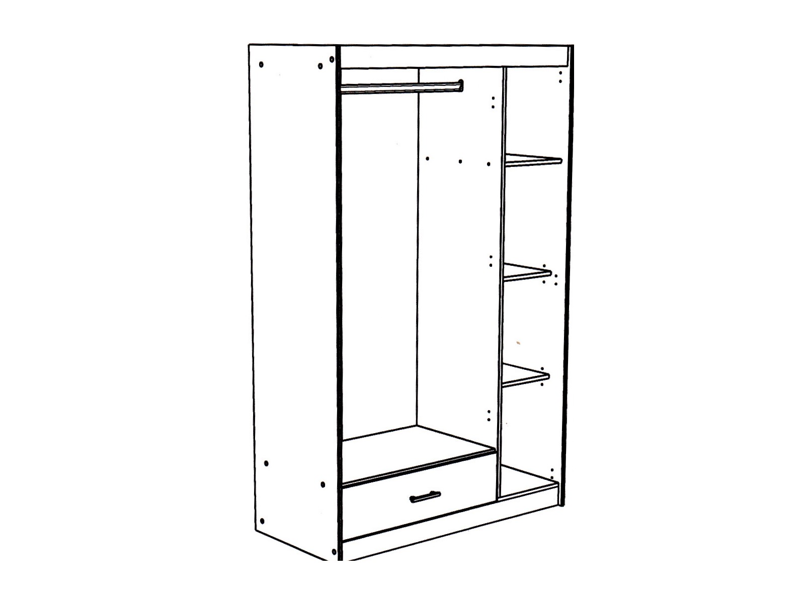 - Hinter der linken und mittleren Tür ist eine Kleiderstange.