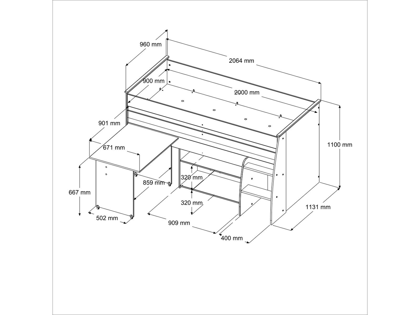 Matratzengröße: 90 x 200 cmAußenmaße: 206 x 110 x 113/183 cm
