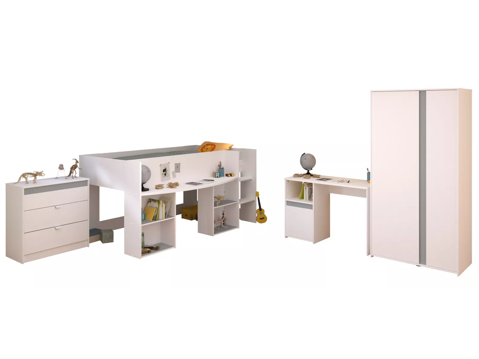 Das Set PARISOT Kinderzimmer PIROUETTE 11 Weiß umfasst: