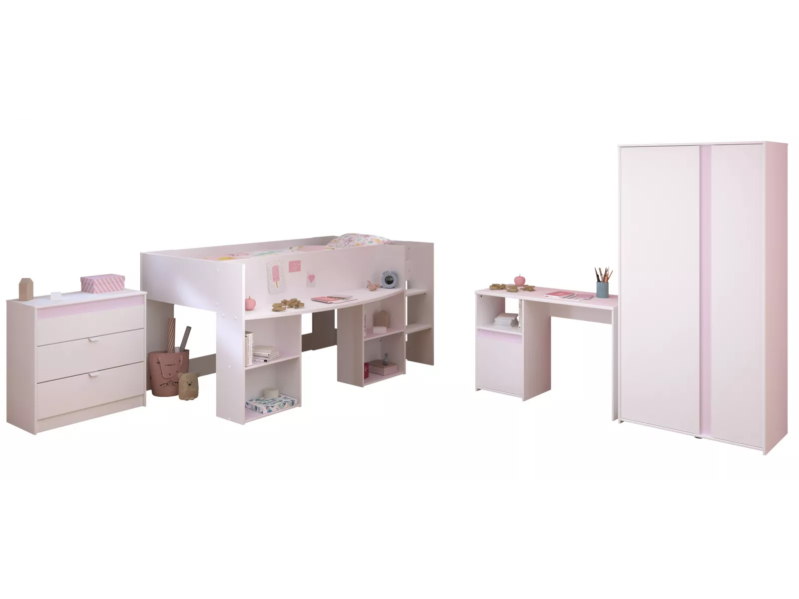 Parisot Pirouette 11 - Jugendzimmer mit Hochbett, Schrank, Schreibtisch und Kommode