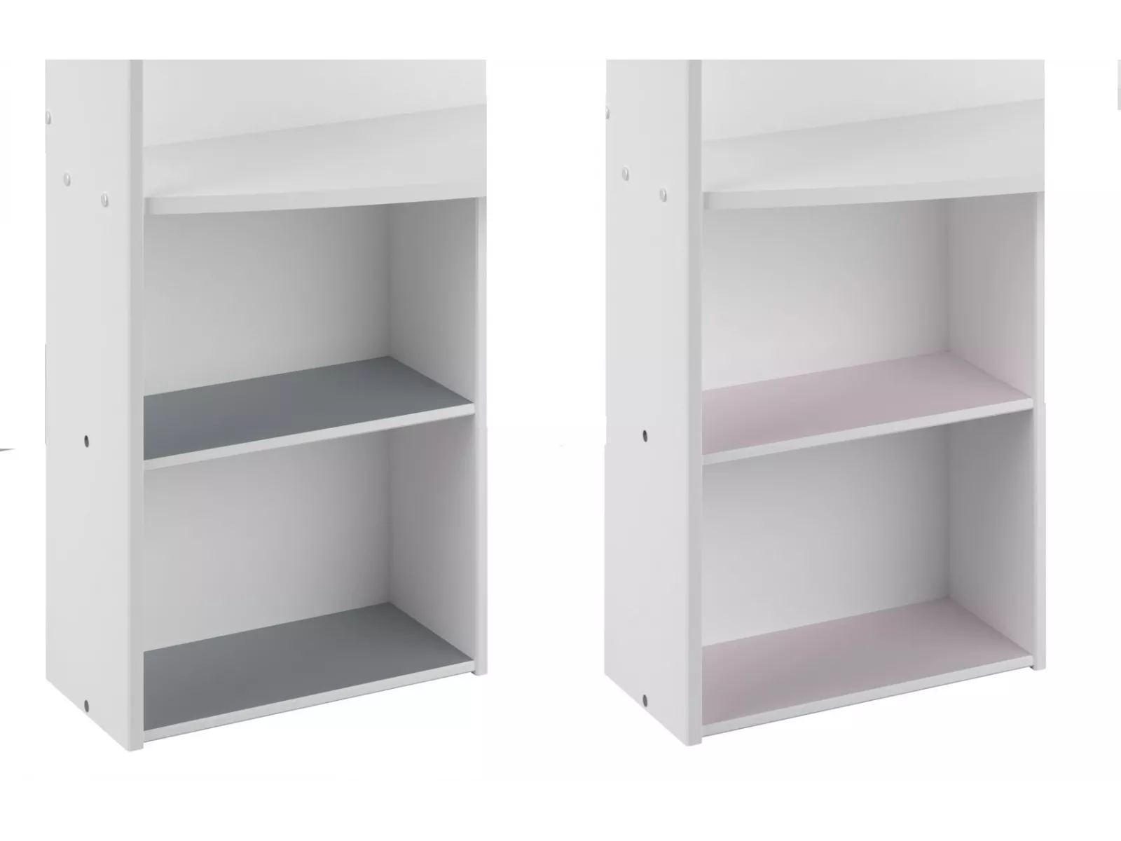 Zierleisten und Regalböden wahlweise rosa oder grau – Kunde entscheidet erst beim Aufbau!