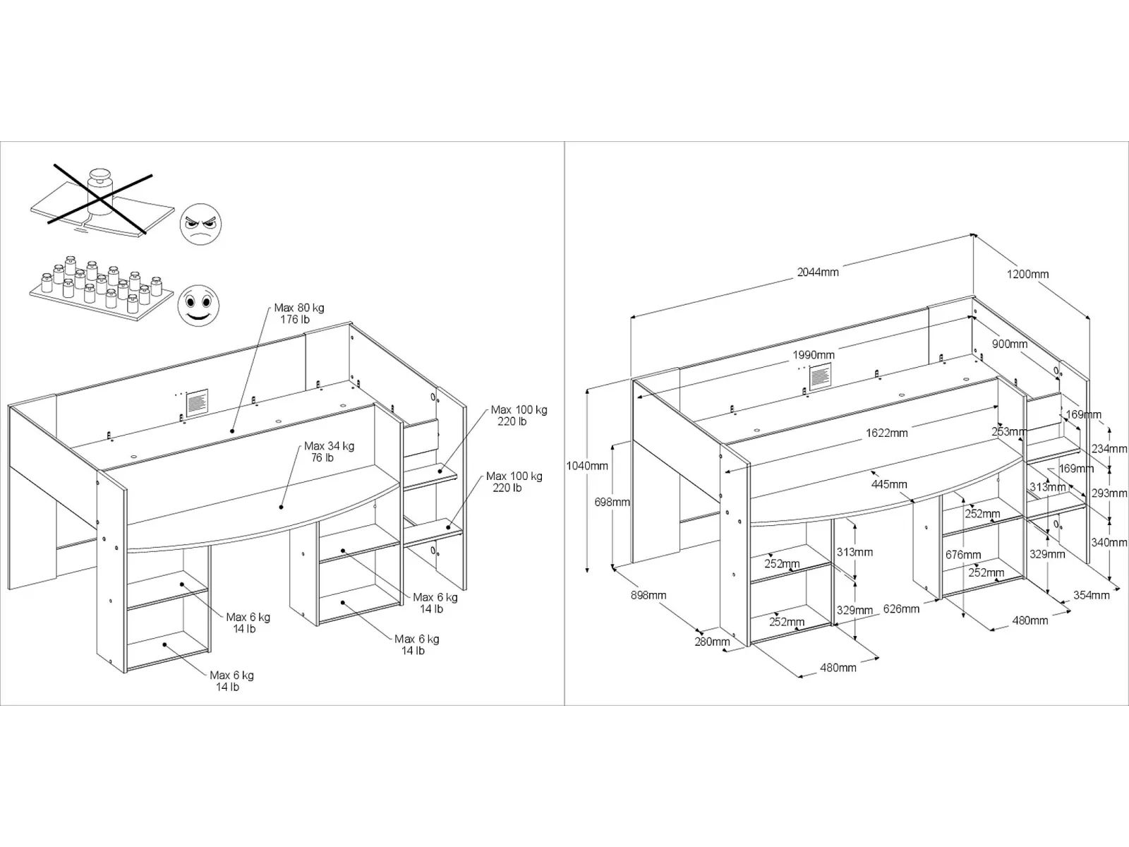 - Liegefläche kann mit bis zu maximal 80 kg belastet werden.