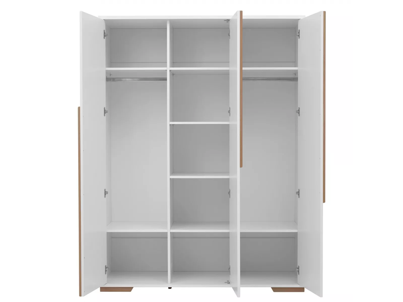 Insgesamt vier weitere Einlegeböden und zwei Kleiderstangen die rechts und links beliebig angeordnet werden können.