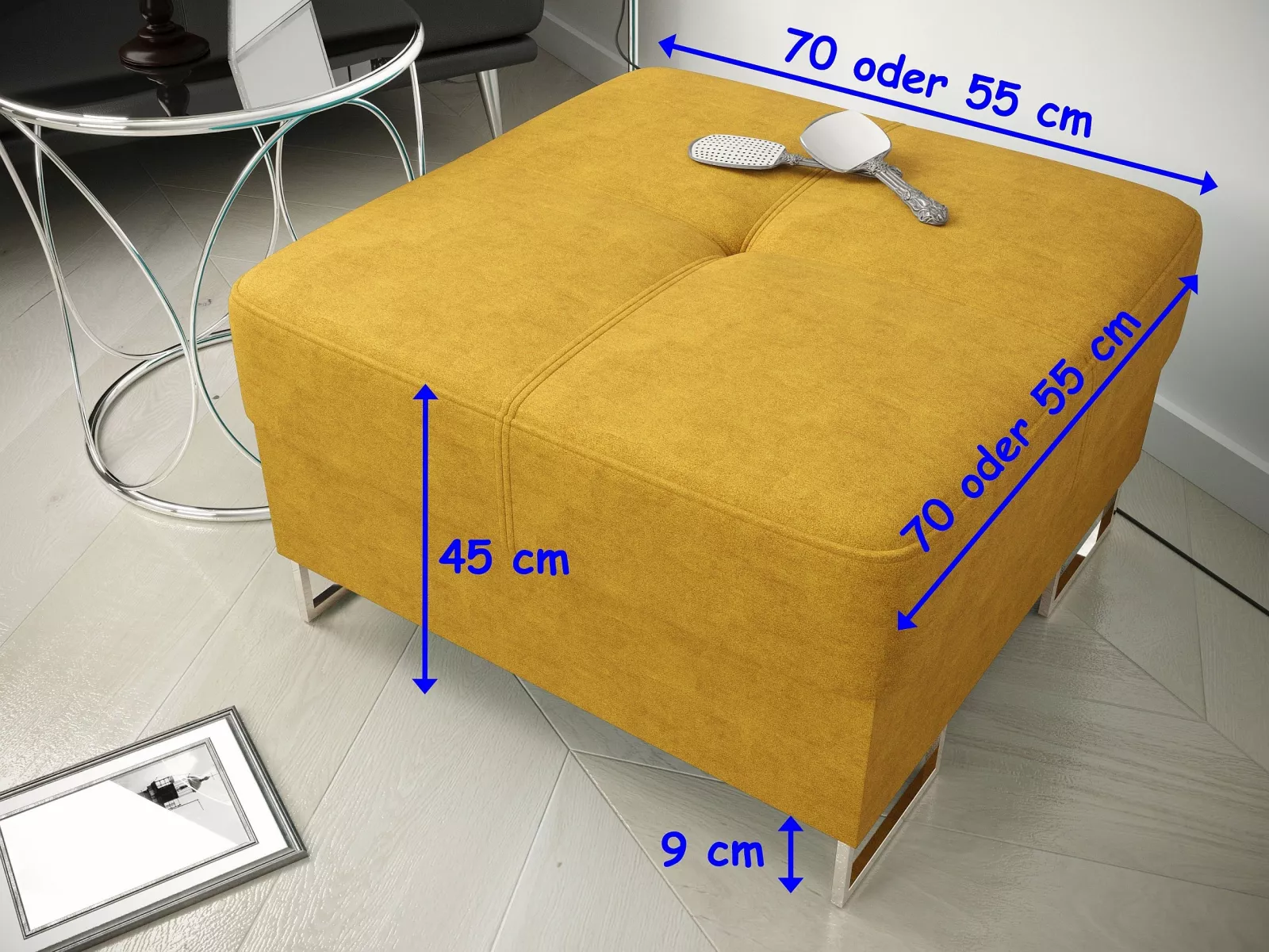 Der quadratische Hocker Galaxy bietet sich an als eine ideale Ergänzung zu einem Sofa oder Ecksofa aus der Serie Galaxy. Den quadratischen Hocker gibt es in zwei Größen 55x55 cm oder 70x70 cm.