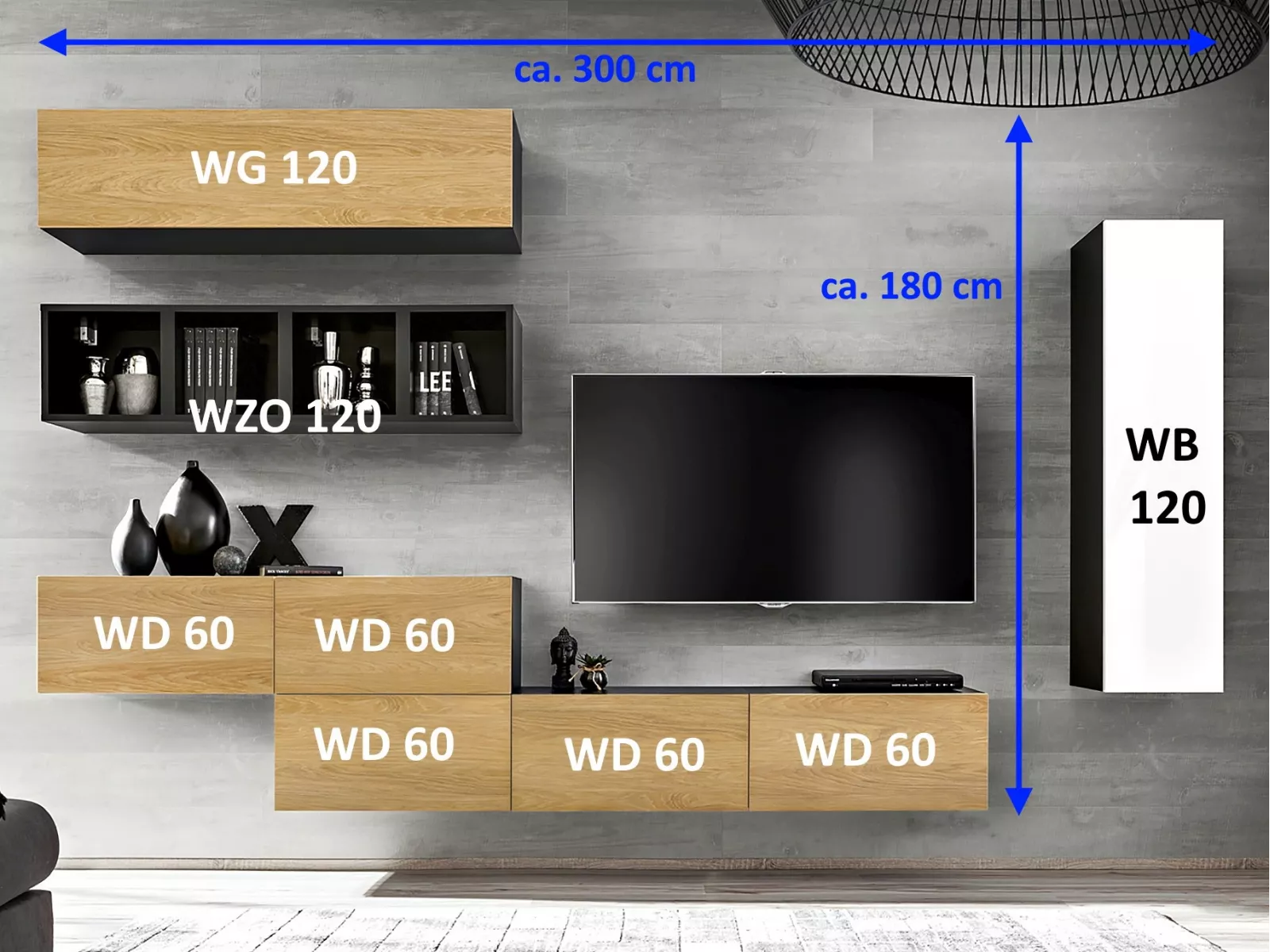 Natürlich können Sie die enthaltenen Schränke auch anders anordnen, die Standardsets mit zusätzlichen Elementen ergänzen oder sich Ihre Wohnwand aus den verfügbaren Schränken selbst zusammenstellen. Schreiben Sie uns ggf. eine Nachricht oder rufen Sie uns an.